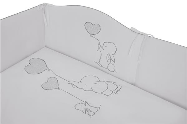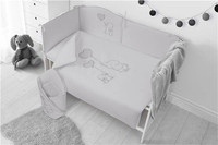 Bawełniany 6-częściowy zestaw do łóżeczka Belisima Amigo dla dzieci. W skład zestawu wchodzi poszewka na poduszkę 40x60 cm, poszewka na kołderkę 90x120 cm, ochraniacz o długości 180 cm, baldachim, poduszka i kołderka. Materia: 100% bewełna, wypełnienie: włókno antyalergiczne. Nasze produkty są bezpieczne, ponieważ: