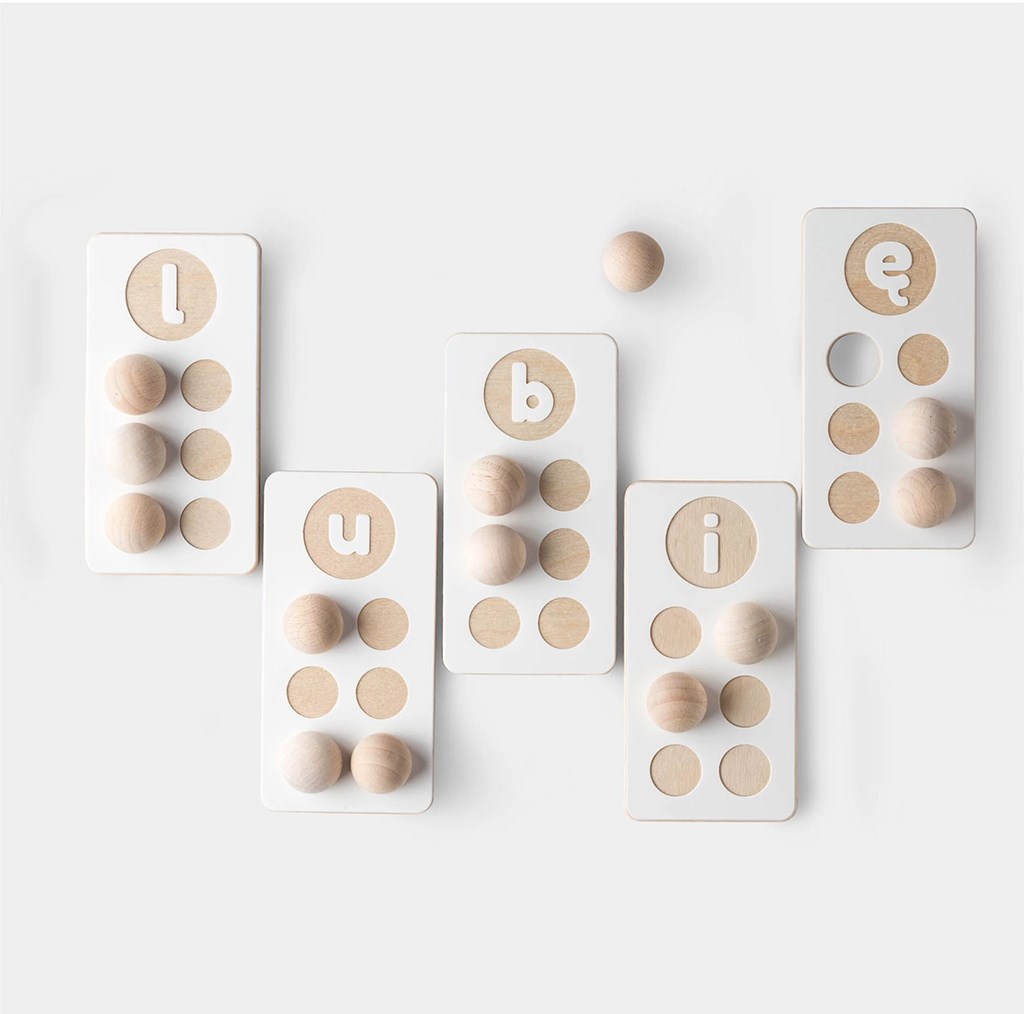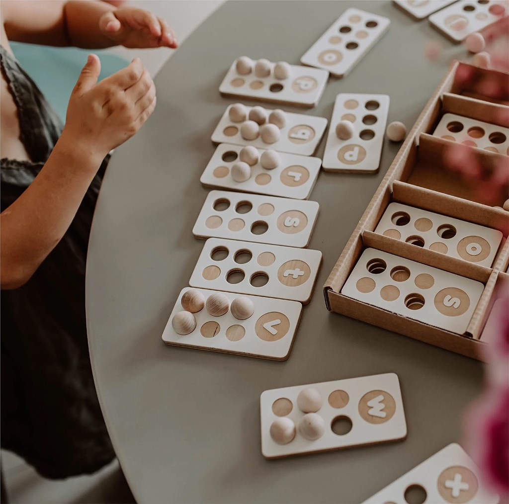 Alfabet z systemem Braille’a – drewniany zestaw pozwoli Twojemu dziecku poznać litery, stanowi to wstęp do późniejszej nauki czytania.