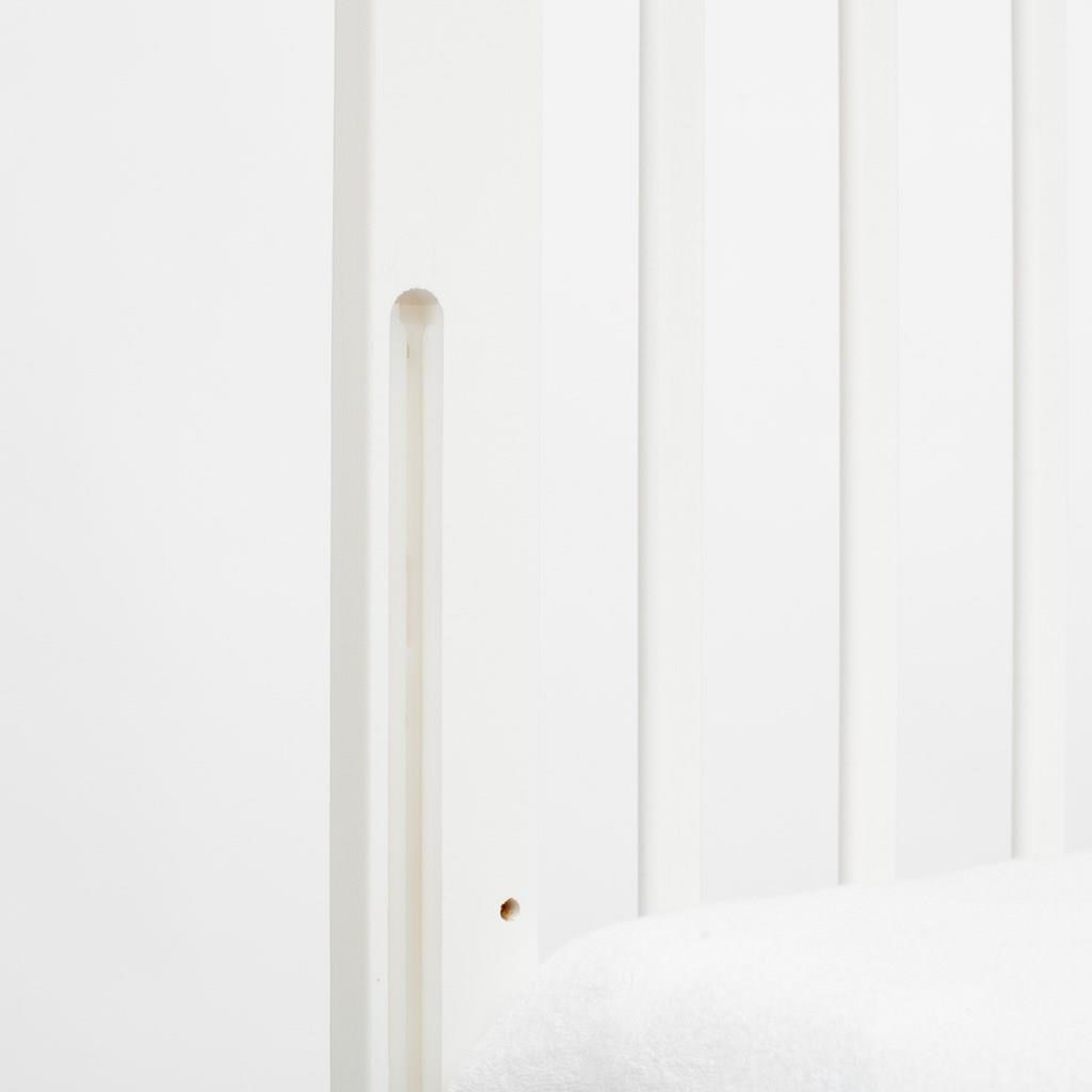 Boki łóżeczka są w 100% wykonane z drewna sosnowego. Zastosowane płaskie szczebelki wysokiej jakości są montowane przy użyciu mocnego kleju wodnego. .
