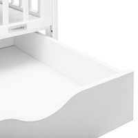 Zarysowania na jednej stronie szuflady i na stelażu, na którym znajduje się materac. W pełni FUNKCIONALNE.Przedstawiamy drewniane łóżeczko marki New Baby - bezpieczeństwo, komfort i styl w jednym z innowacyjnym systemem opuszczanego boku za pomocą jednej ręki, opracowanego przez ekspertów dla większego bezpieczeństwa i komfortu rodziców.