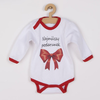 Oryginalne bawełniane body z długim rękawem New Baby, z wesołym napisem Najmilszy podarunek i pięknym obrazkiem czerwonej kokardy. Body ma kolorową lamówkę. Farby używane do druku są certyfikowane i nadają się dla niemowląt. Body jest wykonane z komfortowego i jakościowe materiału, w którym dziecko poczuje się wygodnie. Zapina się na napy. Ubierz dziecko w oryginalne body. Skład: 100% bawełna. Wymiary: obwód wokół klatki piersiowej 36 cm, długość rękawa 18 cm, długość 32 cm.