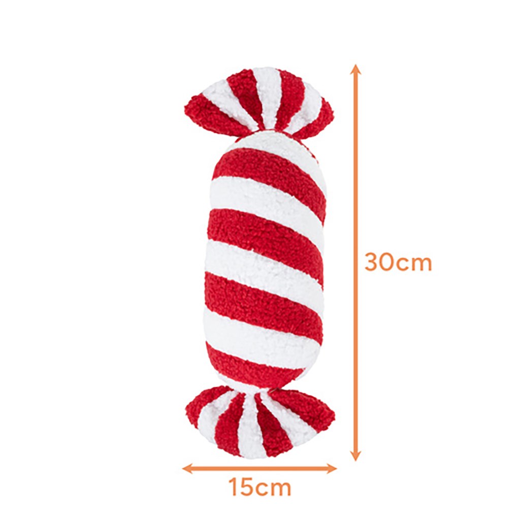 - Typ: dekoracja świąteczna / poduszka w kształcie cukierka (biało-czerwona)
