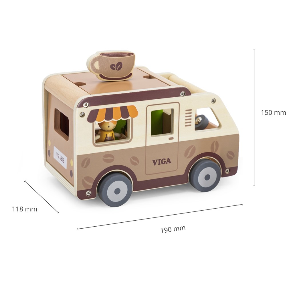 Solidna, drewniana konstrukcja oraz starannie dobrane w pastelowej kolorystyce, nietoksyczne farby sprawiają, że zabawka jest nie tylko estetyczna, ale także bezpieczna dla najmłodszych. Zestaw został zaprojektowany z myślą o rozwoju wyobraźni, zdolności manualnych i umiejętności społecznych dzieci, oferując jednocześnie wielogodzinną, twórczą zabawę. Idealny dla maluchów, które kochają przygody i marzą o własnym mobilnej kawiarni na kółkach
