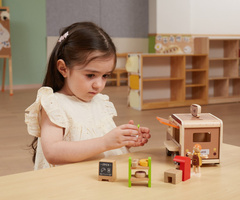 Kamper wykonany z drewna, wykończony w przyjaznych kolorach, jest idealnym narzędziem do rozwijania wyobraźni i umiejętności społecznych dzieci , co zapewnia realistyczne doznania podczas odgrywania ról.