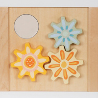 5 różnych aktywności motorycznych w jednej zabawce – labirynt z koralikami, kształty do przebierania, koła zębate, zabawne kostki ze zwierzętami, lusterko, elementy przesuwne.