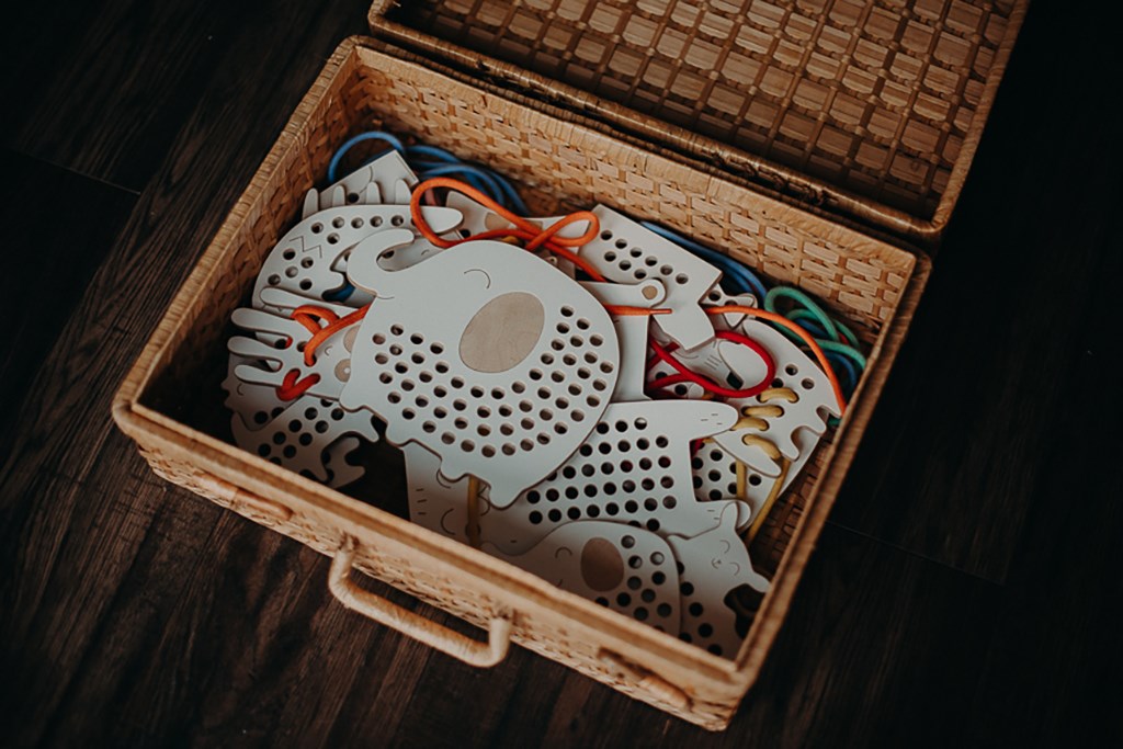 Wzór dla małych mistrzów przeplatania! Zestaw zawierasloń+ sznurowadło.