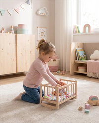 Podaruj dziecku odrobinę prawdziwej magii dzięki tej pięknej drewnianej kołysce dla lalek, uzupełnionej o pościel i materac. To idealny dodatek do pokoju dziecka lub domku dla lalek.