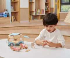Wspieranie zdolności manualnych – zabawa z ruchomymi elementami, takimi jak drzwi kampera czy akcesoria, rozwija precyzję ruchów dłoni i koordynację ręka-oko.