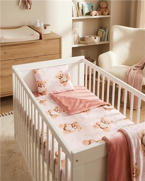 Piękny dwustronny komplet do wózka z Velvet New Baby. Stworzony z dwóch rodzajów tkanin. Bawełniany materiał z nowoczesnym nadrukiem zapewnia komfort dziecka, a materiał Velvet jest bardzo przyjemny w dotyku i przez długi czas zachowuje swój pierwotny kształt. Jest idealny dla niemowląt od momentu urodzenia, ale i dla starszych dzieci jako koc do zabawy, do wózka lub na zewnątrz. Zestaw zawiera poduszkę i kołderkę. Zwracamy ogromną uwagę na jakość, dlatego zestaw z Velvet wykonany jest z materiału wysokiej jakości, który nie farbuje i nie wywołuje reakcji alergicznych. Jest mięciutki w dotyku, ciepły, przytulny, wyjątkowy i bardzo różni się od wszystkich innych. Wypełniony włóknem antyalergicznymi. Skład: jedna strona 100% bawełny z nadrukowanym pięknym wzorem, druga strona to tkanina Velvet - 100% poliester, wypełnienie - 100% antyalergiczne włókno. Materiał odpowiada normie Oeko-Tex Standard 100. Wymiary: poduszka: ok. 30x25 cm, kołderka: ok. 75x50 cm.