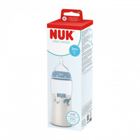 Piękna butelka dla niemowląt NUK First Choice z regulacją temperatury. Specjalny kształt typowy dla smoczków NUK z ortodontycznym smoczkiem antykolkowym jest modelowany na kształt matczynego sutka podczas karmienia. Pozostawia wystarczająco dużo miejsca na naturalne ruchy ssące języka i szczęki. Ulepszony s Anti Colic Air System zapewnia naturalny przepływ mleka, dzięki czemu dziecko pije zrelaksowane bez połykania powietrza. Butelki dla niemowląt są teraz wyposażone w nowy wskaźnik temperatury NUK, który zapobiega piciu zbyt gorącego pokarmu. Kontrolka przypominająca termometr, jest umieszczona między podziałkami i zmienia kolor w zależności od temperatury zawartości butelki. Jeśli jedzenie jest zbyt gorące, niebieskie światło zmieni kolor na biały. Idealnie, jedzenie powinno mieć temperaturę ciała (37 ° C), która odpowiada niebieskiemu kolorowi wyświetlacza. Produkt wykonany z wysokiej jakości nietłukącego plastiku polipropylenowego, nie zawiera BPA (bisfenolu A). Zawartość butelki 300 ml. Odpowiedni dla dzieci w wieku od 3 miesięcy M (średni otwór = do jedzenia dla niemowląt). Testowany klinicznie.