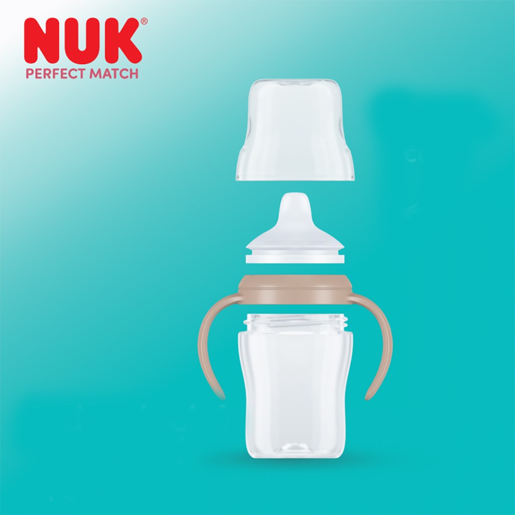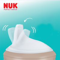 Kubek treningowy NUK Perfect Match został zaprojektowany, aby wspierać płynne przejście z butelki do kubka u dzieci powyżej 6 miesięcy.