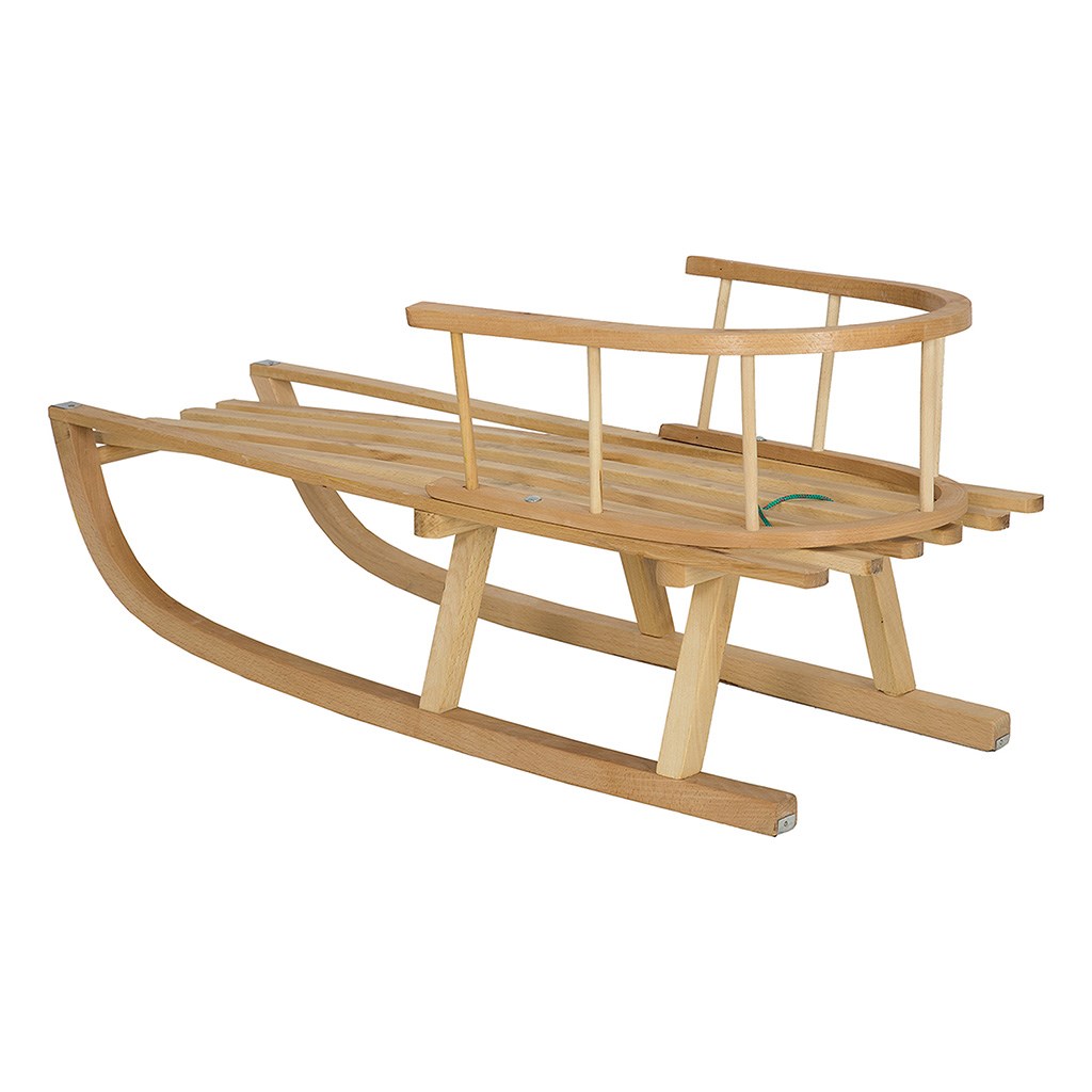 Dziecięce sanki drewniane z oparciem i sznurkiem wykonane z wysokiej jakości drewna bukowego (drewno twarde i odporne na uszkodzenia).