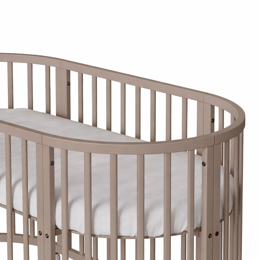 Łóżeczko można przekształcić w kojec. Zaokrąglone krawędzie wspierają naukę wstawania i raczkowania.