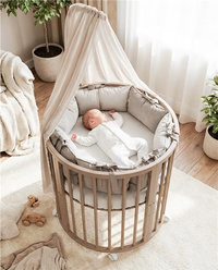 Mini okrągłe łóżeczko (O 70 cm) – idealne dla noworodków, tworzy przytulną i bezpieczną przestrzeń.