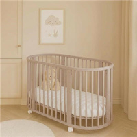 Nasze łóżeczko 3w1 łączy funkcjonalność, estetykę i bezpieczeństwo. Zaokrąglony kształt świetnie prezentuje się w każdym wnętrzu, a solidna drewniana konstrukcja gwarantuje trwałość na lata.