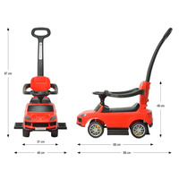 Ten samochód dla dziecka z rączką został zaprojektowany tak, aby był wygodny również dla rodzica
