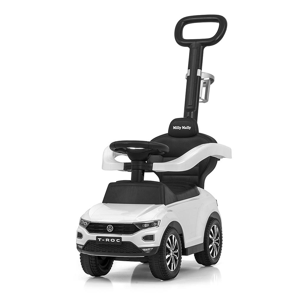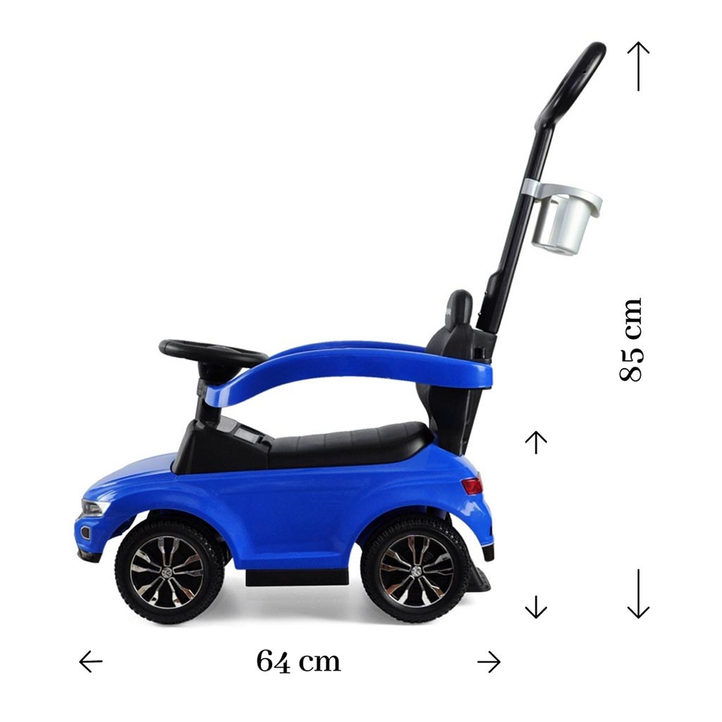 Jeździk VOLKSWAGEN T-ROC na licencji Volkswagena jest przedmiotem wykonanym z wysoką dbałością o najmniejsze detale i jakość wykorzystanych materiałów. Dzięki wielofunkcyjności zabawki pociecha szybko się nią nie znudzi, a poprzez zabawę będzie rozwijać swoje zdolności manualne oraz motorykę. Dodatkowym atutem jest interaktywna kierownica, która sprawi, że zabawa będzie jeszcze ciekawsza! Produkt posiada skrętne koła za pomocą kierownicy lub rączki do prowadzenia z uchwytem na butelkę lub kubek, która zapewni komfort prowadzenia podczas spacerów. Bardzo łatwy w montażu i demontażu, oraz stabilny i bezpieczny. Możliwość odczepiania poszczególnych elementów (barierki i rączka) co sprawia, iż jeździk "rośnie" wraz z pociechą.