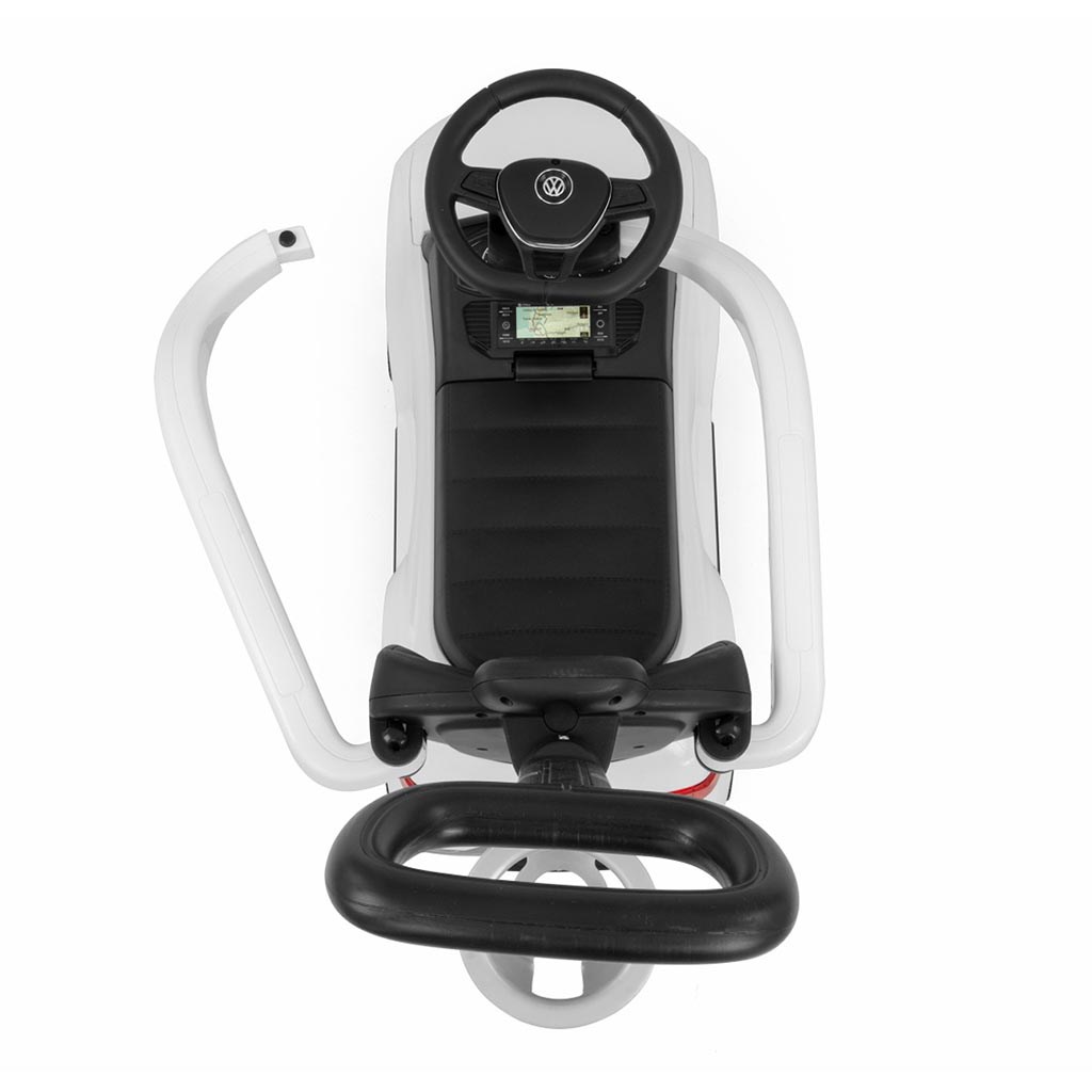- Trójramienna kierownica z logiem VW, wyposażona w klakson oraz wesołe melodyjki