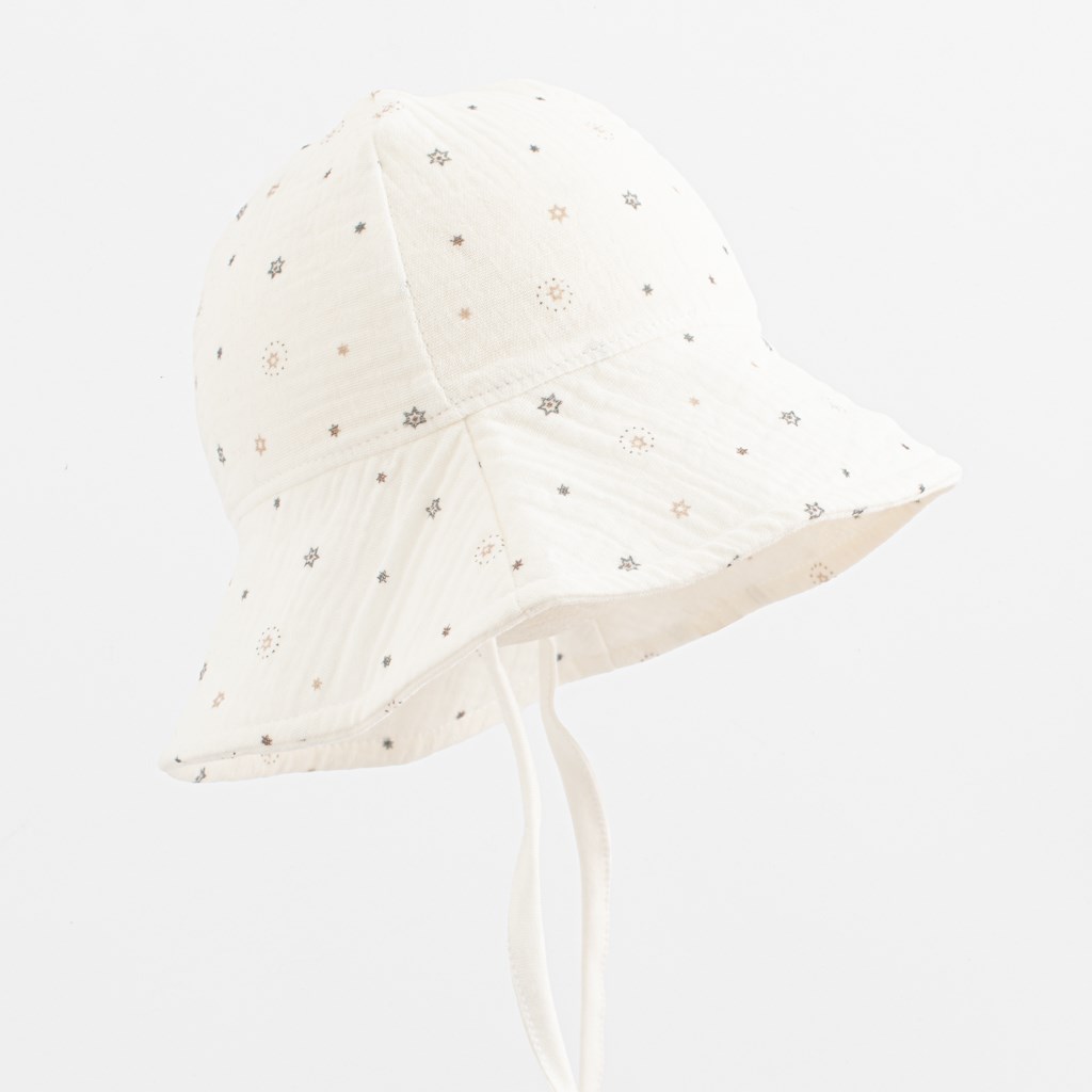 Piękny i praktyczny muślinowy kapelusz dla niemowląt New Baby Zora. Kapelusz przeznaczony jest dla niemowląt i małych dzieci, które potrzebują ochrony przed słońcem. Jest wiązany za pomocą sznurówek. Sznurowanie jest wygodne, więc nie musisz się martwić, że kapelusz może się łatwo ściągnąć lub spaść. Dziecko będzie wyglądać uroczo, a jednocześnie będzie chronione przed promieniami słonecznymi. Muślin jest jedną z najczystszych, najprostszych i najdelikatniejszych tkanin na świecie. Drobno tkany, oddychający materiał jest tak doskonały, że pokochały je dzieci na całym świecie. Luźny splot pozwala muślinowi „oddychać” i zapewnia wystarczającą cyrkulację powietrza, zmniejszając ryzyko przegrzania. Ta jego cecha pomaga zapewnić dziecku wygodę i bezpieczeństwo, a rodzicom spokój. Muślin jest bardzo trwały, dzięki czemu bez problemu poradzi sobie z wielokrotnym praniem, a z czasem staje się cieńszy i bardziej miękki. Skład:100% bawełna.