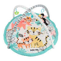 Pałąk można odpiąć, podobnie jak zabawki. Przyjemny i miękki materiał pozwala wygodnie leżeć na brzuszku lub plecach i umożliwia dziecku swobodne poruszanie się.