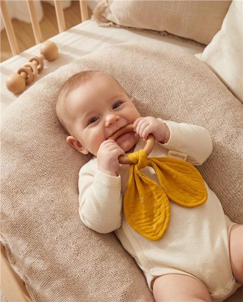 Gryzak z pieluszką muślinową to idealny zestaw przy ząbkowaniu niemowlaka. Gryzak wykonany z przyjaznego dla środkowa drewna bukowego oraz delikatnej tkaniny muślinowej. Całkowicie bezpieczny dla niemowląt przynosi ukojenie w czasie ząbkowania. Gryzak może również posłużyć jako zabawka dla dzieci. Gryzak idealnie pasuje do innych naszych muślinowych produktów tworząc piękny zestaw, który można podarować na Baby Shower.