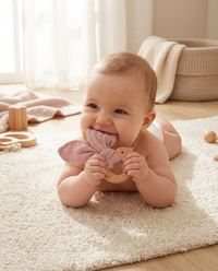 Gryzak z pieluszką muślinową to idealny zestaw przy ząbkowaniu niemowlaka. Gryzak wykonany z przyjaznego dla środkowa drewna bukowego oraz delikatnej tkaniny muślinowej. Całkowicie bezpieczny dla niemowląt przynosi ukojenie w czasie ząbkowania. Gryzak może również posłużyć jako zabawka dla dzieci. Gryzak idealnie pasuje do innych naszych muślinowych produktów tworząc piękny zestaw, który można podarować na Baby Shower.