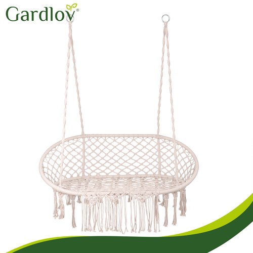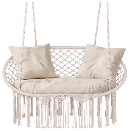 Huśtawka bocianie gniazdo podwójna kremowa Gardlov – fotel wiszący dla 2 osób 300 kg + 3 poduszki