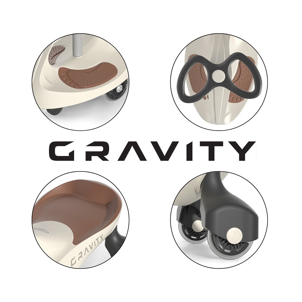Pojazd grawitacyjny GRAVITY to innowacyjny jeździk, który działa wykorzystując siłę grawitacji oraz ruchów ciała dziecka. Nie wymaga baterii ani pedałów. Wystarczy, że dziecko manewruje kierownicą w prawo i w lewo, aby pojazd zaczął poruszać się do przodu.