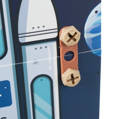 - Motyw kosmiczny - rakiety, planety i figurka astronauty zachęcają do wcielania się w role i tworzenia własnych historii. 161 elementów z ilustracjami tematycznymi i plansze montażowe z motywem KOSMOSU.