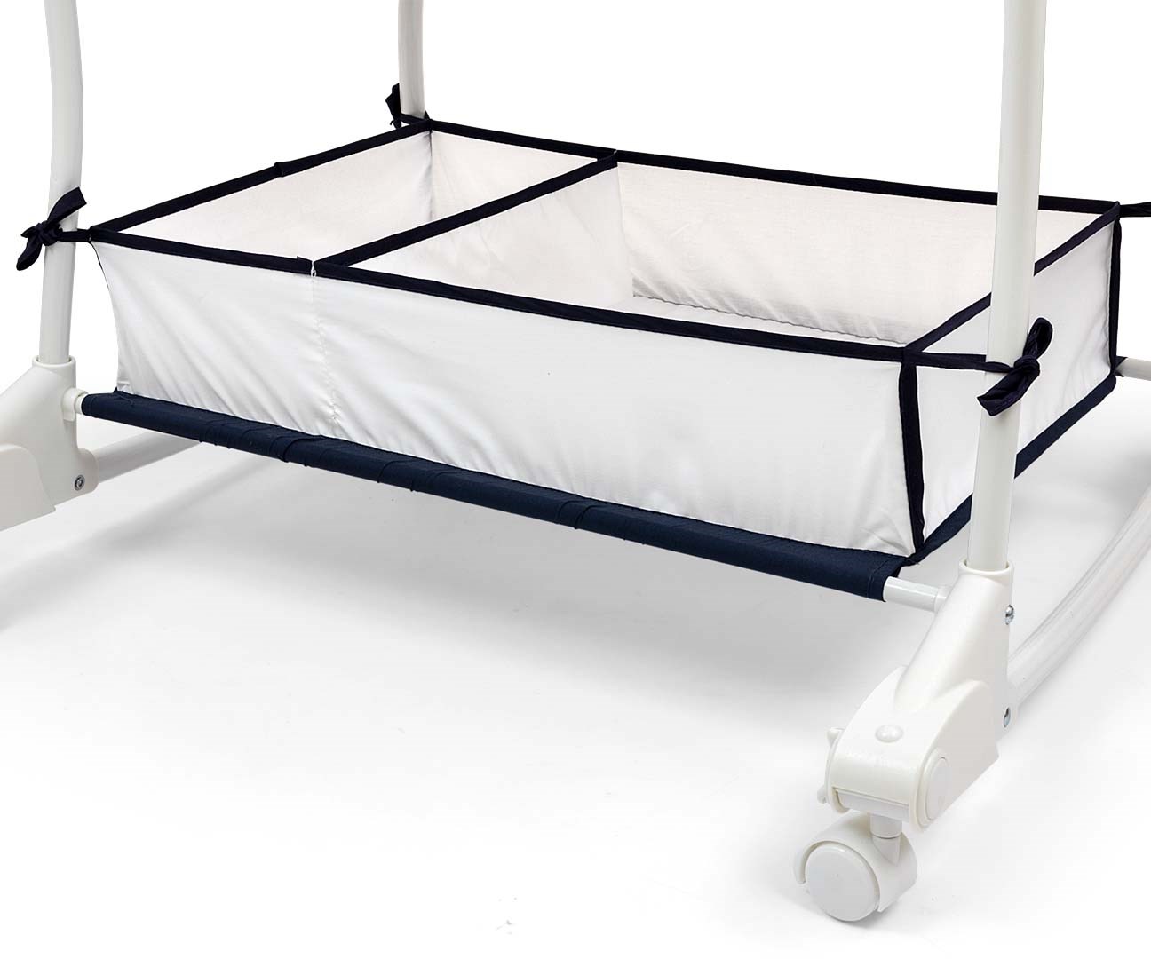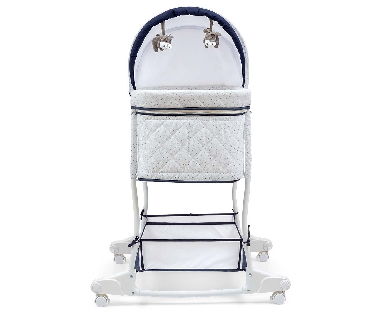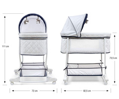 Kołyska – pierwsze łóżeczko wyposażone zostało w praktyczny schowek- koszyk na przybory i akcesoria dziecka umieszczony na dole, posiada 2 komory. Obsługa kołyski-łóżeczka jest bardzo intuicyjna, co pozwala na szybkie i płynne przejścia pomiędzy funkcjami kołyski Dream On. Poszycie budki i gondoli można zdejmować do delikatnego prania. Miękki materacyk zapewni komfort snu maluszka.