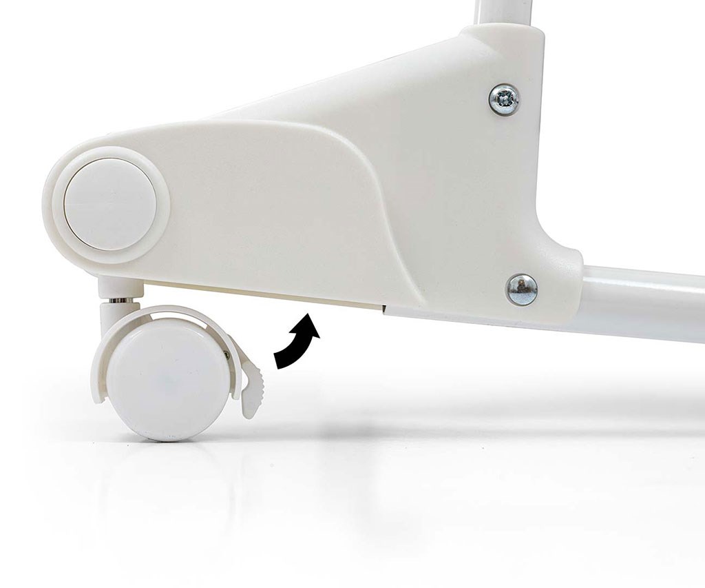 Aby zmienić funkcję z łóżeczka na kołyskę należy każde kółko pociągnąć i obrócić, wtedy się schowa w płozę