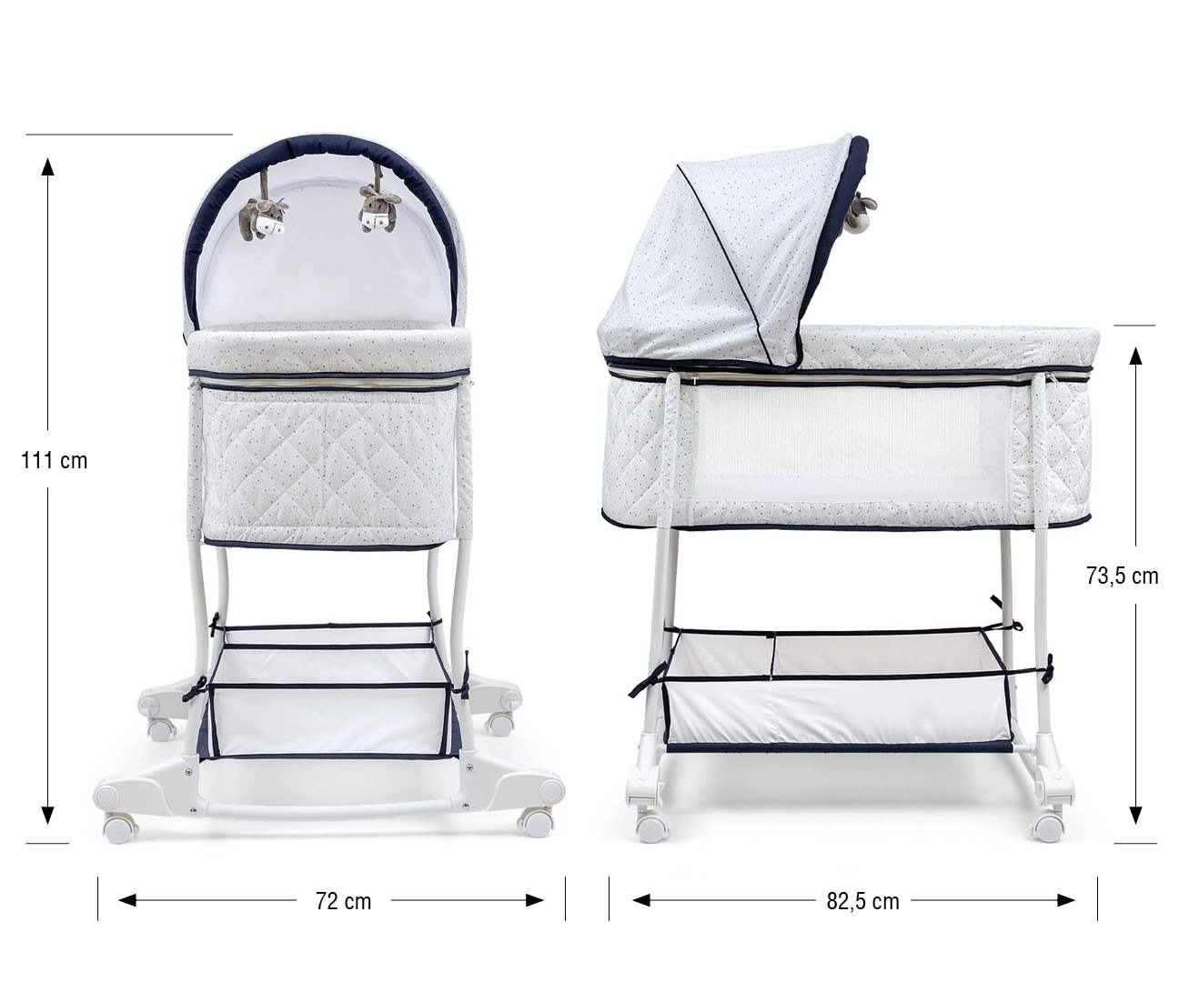 Wysokość od podłogi do gondoli w opcji łóżeczka: 73,5 cm
