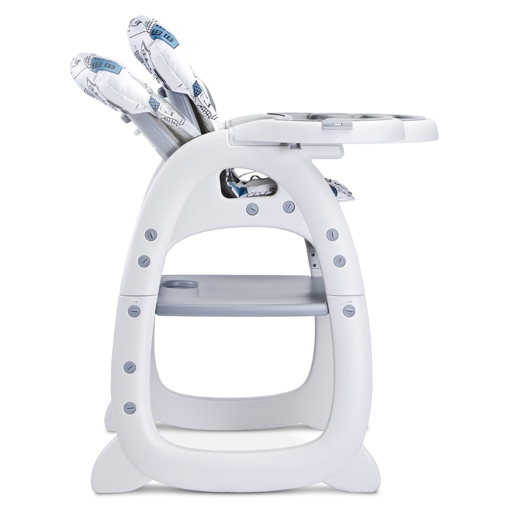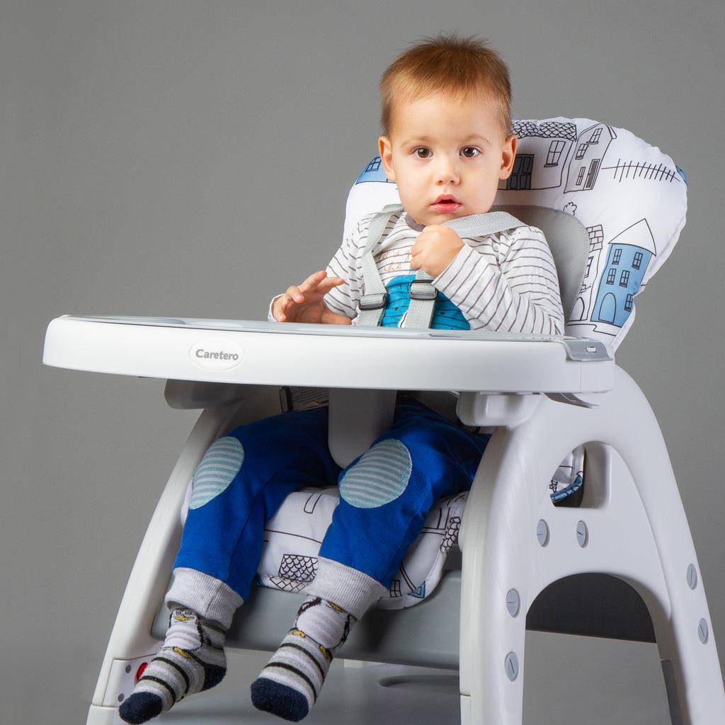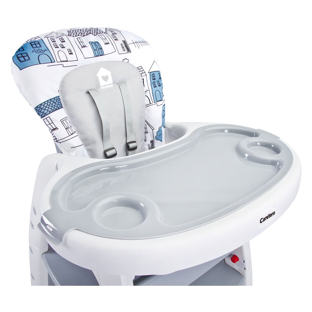 Krzesełko do karmienia CARETERO HOMEE. Nowe krzesełko może być używane na rożne sposoby. Zależy to tylko od wieku dziecka oraz potrzeb. Raz jest więc klasycznym wysokim krzesełkiem i ułatwia karmienie przy stole. Innym razem zestawem krzesełko+stoliczek idealnym do zabawy i samodzielnego wcinania obiadku. Krzesełko wykonano z wysokiej jakości plastiku. Rama ma łagodnie zaokrąglone krawędzie. Nawet bardzo aktywne dziecko będzie chronione przed stłuczeniami. Siedzenie wyposażone jest w 5-punktowe szelki. Tacka z kolei pełni rolę pałąka z trzpieniem między nóżkami. Zapobiega to wysunięciu się dziecka z krzesełka i upadkom. Maluszek może więc spokojnie pałaszować kaszkę lub rysować domek. Komfort dziecka podczas posiłków i innych zajęć jest bardzo ważny. Jego zapewnieniu służy miękkie wypełnienie siedzenia oraz regulacja. Zarówno tackę jak i oparcie można ustawić w jednej z 3 pozycji. Rodzicowi jest prościej karmić maleństwo, a dziecku zrelaksować się. Skierowane dla dzieci w wieku od 6 miesięcy do około 3-4 lat. Spora powierzchnia stoliczka (w konfiguracji krzesełko+stolik) oraz specjalne wgłębienia służą beztroskiej zabawie i posiłkom. Na blacie zmieści się porządny zestaw obiadowy lub zabawowy. Kubek czy kredki można umieścić w otworach - na pewno nie znikną z oczu.Homologacja EN 14988. Opis: