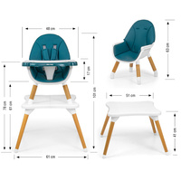 Nowoczesne i stylowe krzesełko do karmienia dzieci 2w1 Malmo. Wykonane z najwyższej jakości materiałów – łączy w sobie funkcjonalność oraz nowoczesny design. Krzesełko w wersji wysokiej przeznaczone dla niemowląt od 6 miesiąca życia do 36 miesięcy życia lub osiągnięcia wagi 15 kg, a w wersji niskiej krzesełko plus stoliczek dla dzieci od 3 do 6 roku życia lub osiągnięcia wagi 25 kg.
