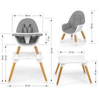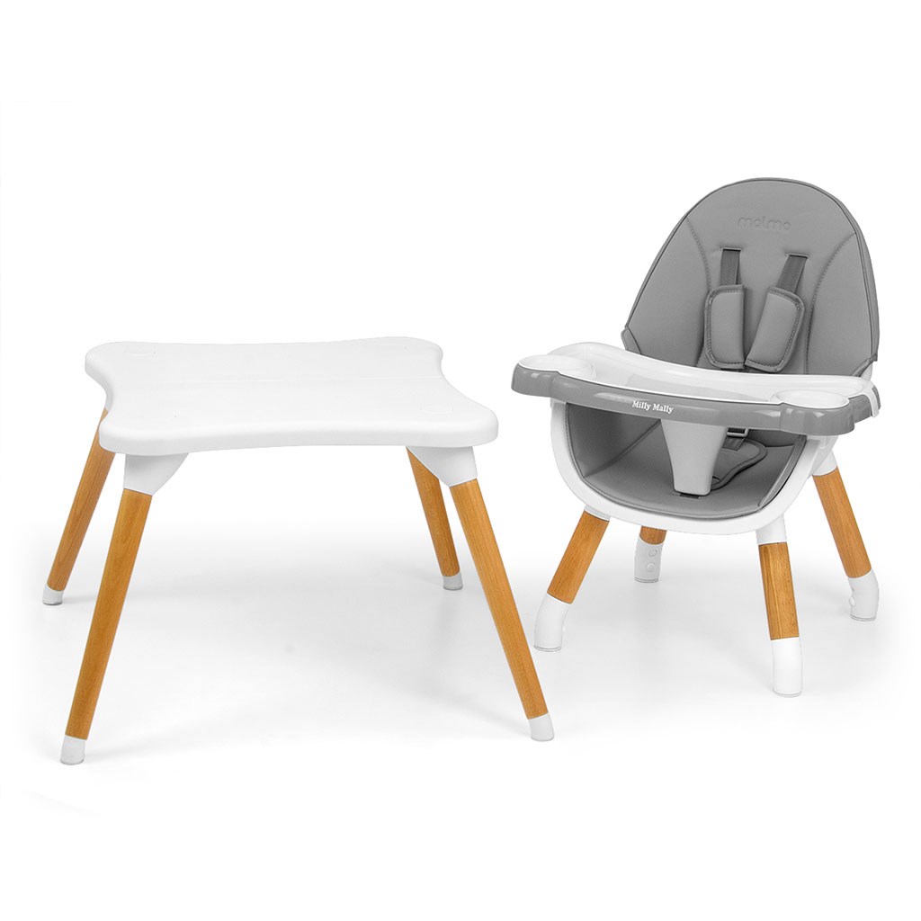 Nowoczesne i stylowe krzesełko do karmienia dzieci 2w1 Malmo. Wykonane z najwyższej jakości materiałów – łączy w sobie funkcjonalność oraz nowoczesny design. Krzesełko w wersji wysokiej przeznaczone dla niemowląt od 6 miesiąca życia do 36 miesięcy życia lub osiągnięcia wagi 15 kg, a w wersji niskiej krzesełko plus stoliczek dla dzieci od 3 do 6 roku życia lub osiągnięcia wagi 25 kg.