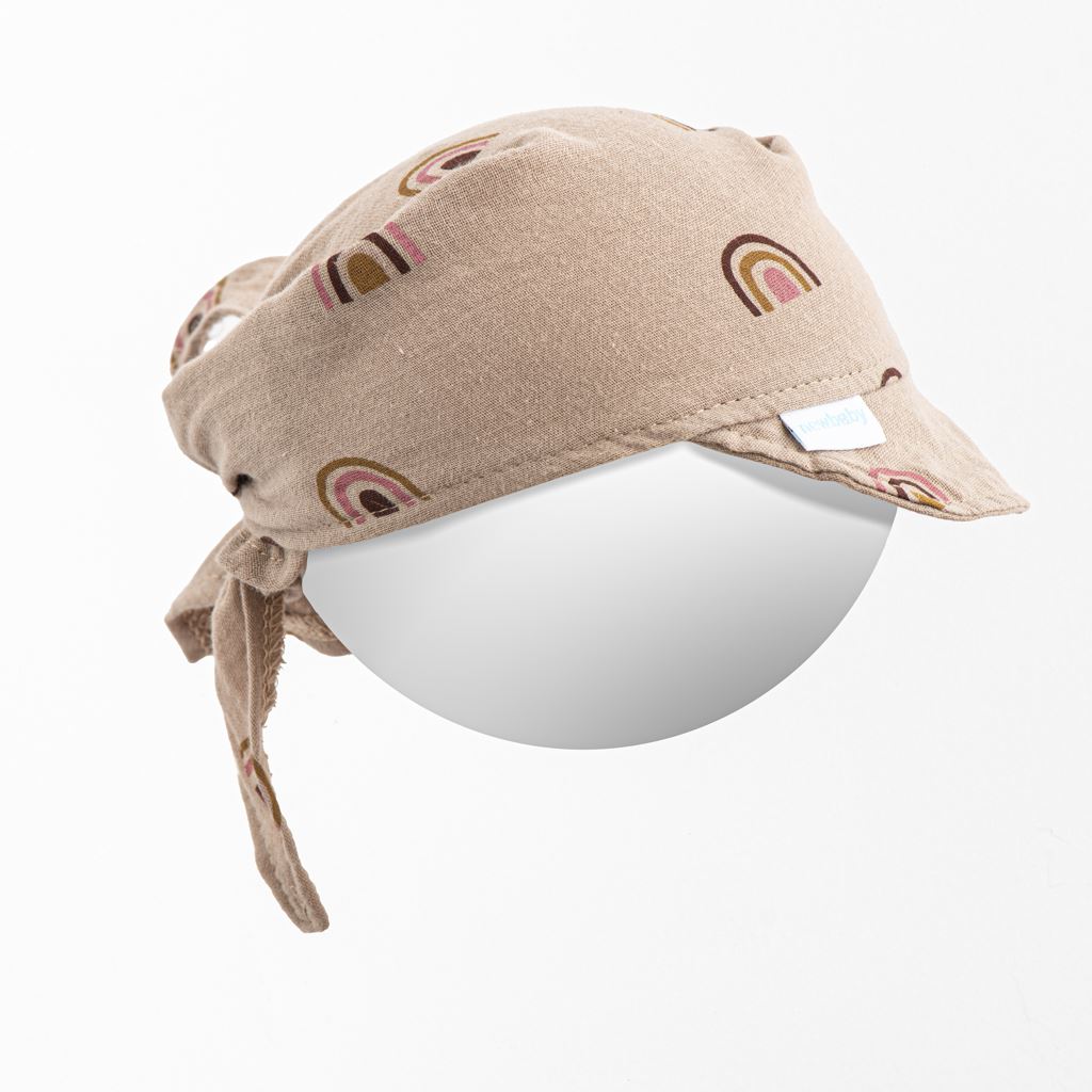 Letnia muślinowa chustka z daszkiem New Baby Rainbow. Chustka chroni główkę przed ostrym słońcem, a dzięki daszkowi rzuci cień na twarzyczkę i chroni oczy dziecka przed słońcem. Rozmiar jest regulowany za pomocą węzełka. Bardzo przyjemny, miękki i wysokiej jakości materiał, odpowiedni dla niemowląt. Muślin jest jedną z najczystszych, najprostszych i najdelikatniejszych tkanin na świecie. Drobno tkany, oddychający materiał jest tak doskonały, że pokochały je dzieci na całym świecie. Luźny splot pozwala muślinowi „oddychać” i zapewnia wystarczającą cyrkulację powietrza, zmniejszając ryzyko przegrzania. Ta jego cecha pomaga zapewnić dziecku wygodę i bezpieczeństwo, a rodzicom spokój. Muślin jest bardzo trwały, dzięki czemu bez problemu poradzi sobie z wielokrotnym praniem, a z czasem staje się cieńszy i bardziej miękki. Skład: 100% bawełna.