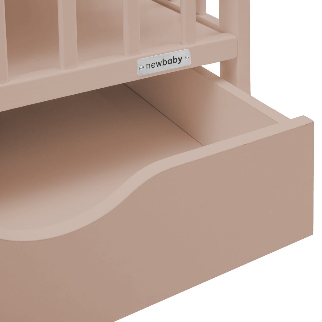 Zostało w całości wykonane z drewna sosnowego. Wszystkie stosowane w produkcji materiały i surowce posiadają atesty albo certyfikaty, dlatego meble marki New Baby są całkowicie bezpieczne i trwałe.