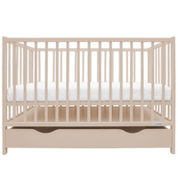 Dodatkowa przestrzeń do przechowywania – dzięki pojemnej szufladzie na prowadnicach kulkowych pieluchy, pościel czy zabawki będziesz mieć zawsze pod ręką.