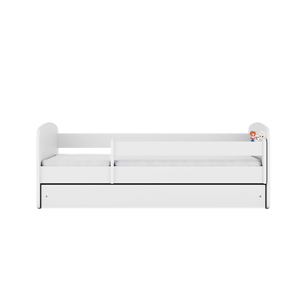 Łóżko pojedyncze z barierką jest wykonane z wysokiej jakości płyty meblowej o grubości 18 mm. Dostępne jest w kilku rozmiarach i wariantach kolorystycznych. Bajkowe wzory zapewniają szeroki wybór i możliwość personalizacji.