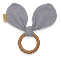 Bezpieczny gryzak z naturalnego drewna bukowego połączony z delikatną muślinową tkaniną. Idealny w okresie ząbkowania – przynosi ulgę, a jednocześnie może służyć jako pierwsza zabawka.
