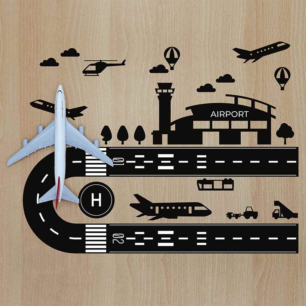 Naklejka na podłogę Lotnisko. Naklejka na podłogę lotnisko powstała z myślą o fanach podniebnych przygód. W końcu kto z nas w dzieciństwie nie chciał być pilotem :) My pomagamy spełnić te marzenia, a zarazem gwarantujemy nieziemską zabawę, bez zajmowania zbędnego miejsca w pokoju dziecka. To rewelacyjna alternatywa dla tradycyjnych zabawek, które zajmują dużo miejsca, a ich montaż i demontaż jest czasochłonny. Idealna propozycja dekoracji pokoju chłopca. Nasz produkt jest unikatowy i jedyny w swoim rodzaju. Wykonany ze specjalnej folii i matowego laminatu, dzięki czemu jego powierzchnia jest trwała i nieścieralna, a Ty po zakończonej zabawie, bez problemu możesz umyć podłogę, nie obawiając się o naszą naklejkę. Spraw swojemu dziecku wyjątkową frajdę, a sobie zaoszczędź czasu na sprzątanie.