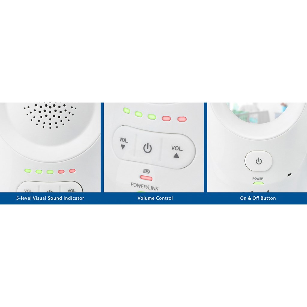 Niania elektroniczna DM1111 to niewielki zestaw składający się z odbiornika oraz nadajnika. Zwiększony zasięg dzięki doskonałej cyfrowy transmisji wesprze Cię przy stałej kontroli nad maluszkiem. Diody LED na jednostce rodzica wskazują poziom dźwięku w pokoju dziecka, dzięki czemu możesz wizualnie monitorować poziom hałasu przy wyciszonej jednostce.