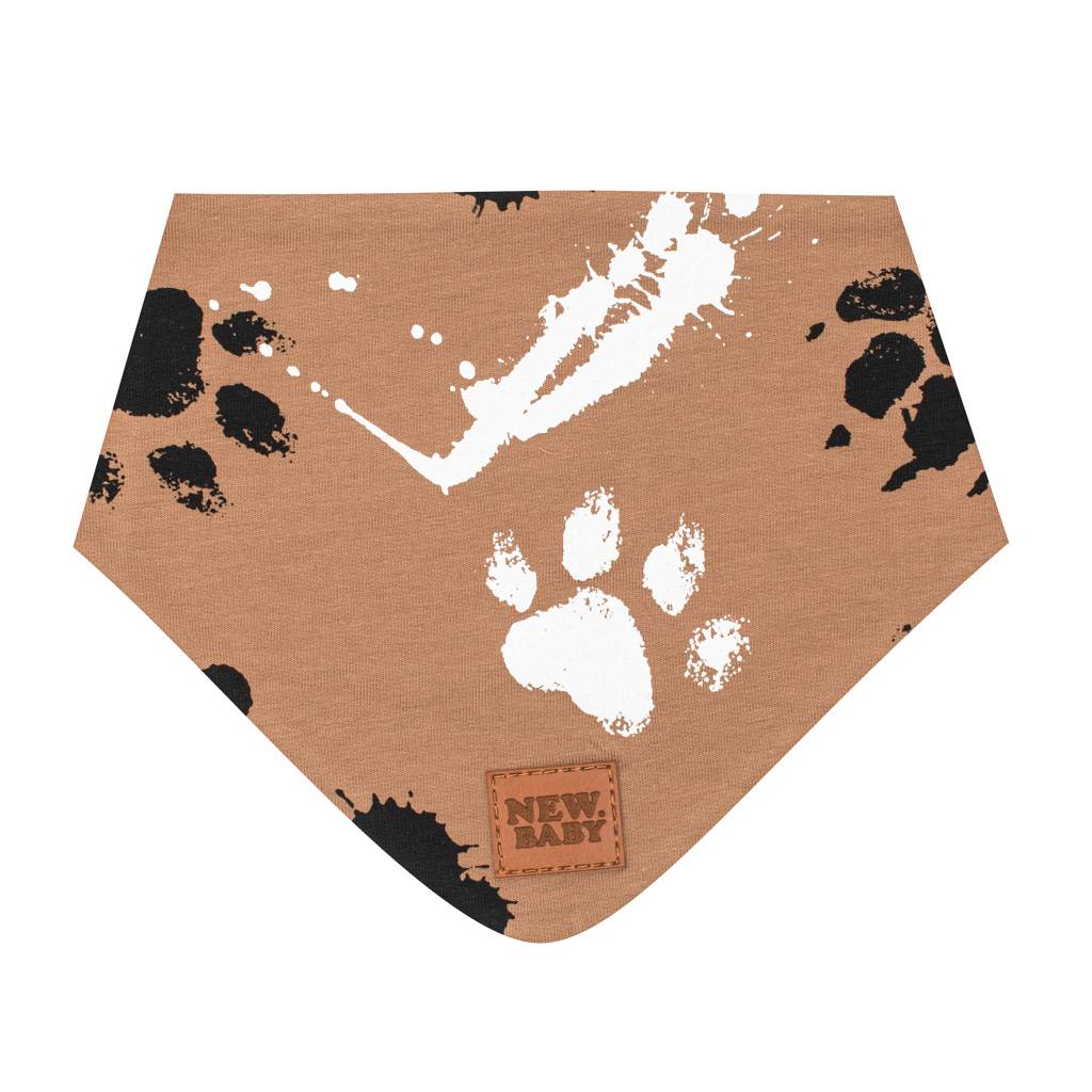 Pomysłowa bawełniana chusta na szyję New Baby Paw. Szalik jest cały w nadruk z dziecięcym wzorem. Wykonany jest z wysokiej jakości bawełny z dodatkiem elastanu oraz bawełnianej podszewki. Materiał jest gładki, lekko elastyczny i przyjemny w dotyku. Szalik można zapiąć w 2 rozmiarach za pomocą nap. Skład: 95% bawełna, 5% elastan, podszewka-95% bawełna, 5% elastan. Obwód S: 38-41 cm. Idealny na wiosnę i jesień.