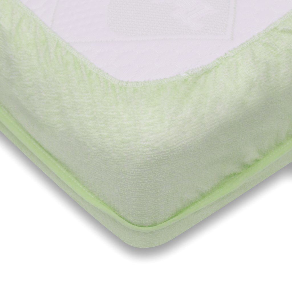 Frotte prześcieradło z wodoodporną dolną częścią, chroni materac przed zabrudzeniem. Górna część jest z frotte materiału, dolna część z nieprzemakalnej folii. Wymiary: 60x120 cm. Skład: 90% bawełna, 10% poliester. Wykonane z atestowanych materiałów.