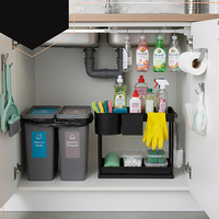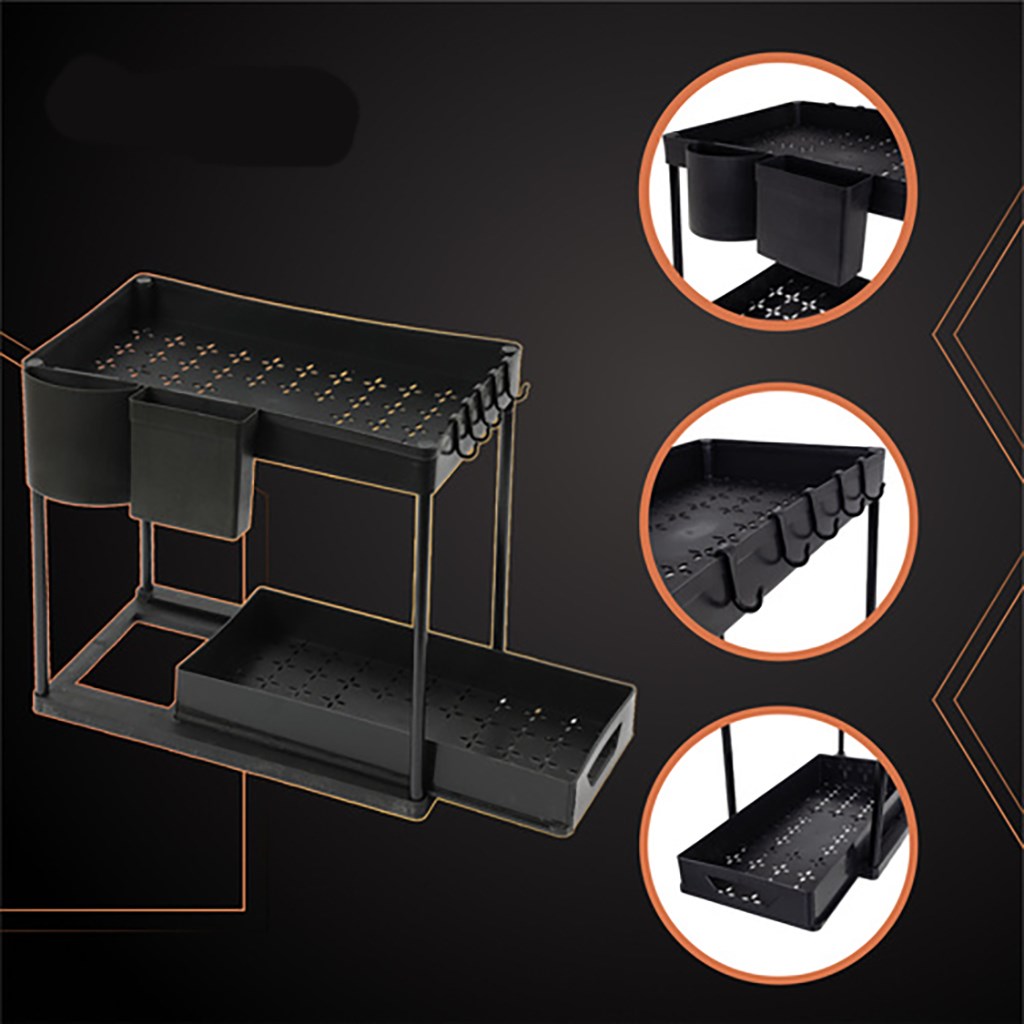 Organizer Pod Zlew 2 Poziomowy Wysuwany Czarny Regał Kuchenny Półka -