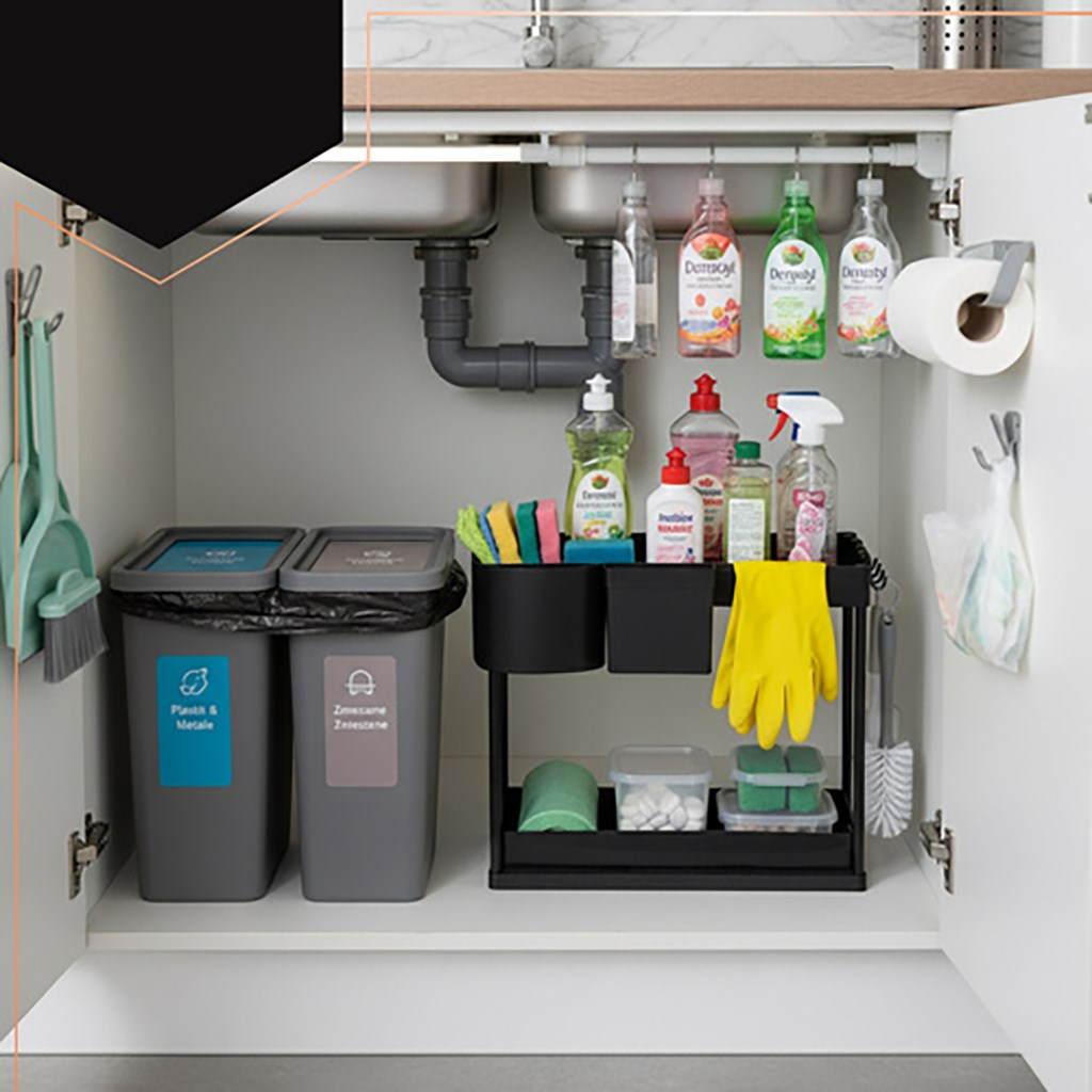 Zyskaj Więcej Miejsca w Kuchni – Nasz 2-poziomowy organizer pod zlew z wysuwaną półką to perfekcyjne rozwiązanie dla osób, które pragną maksymalnie wykorzystać przestrzeń w kuchni