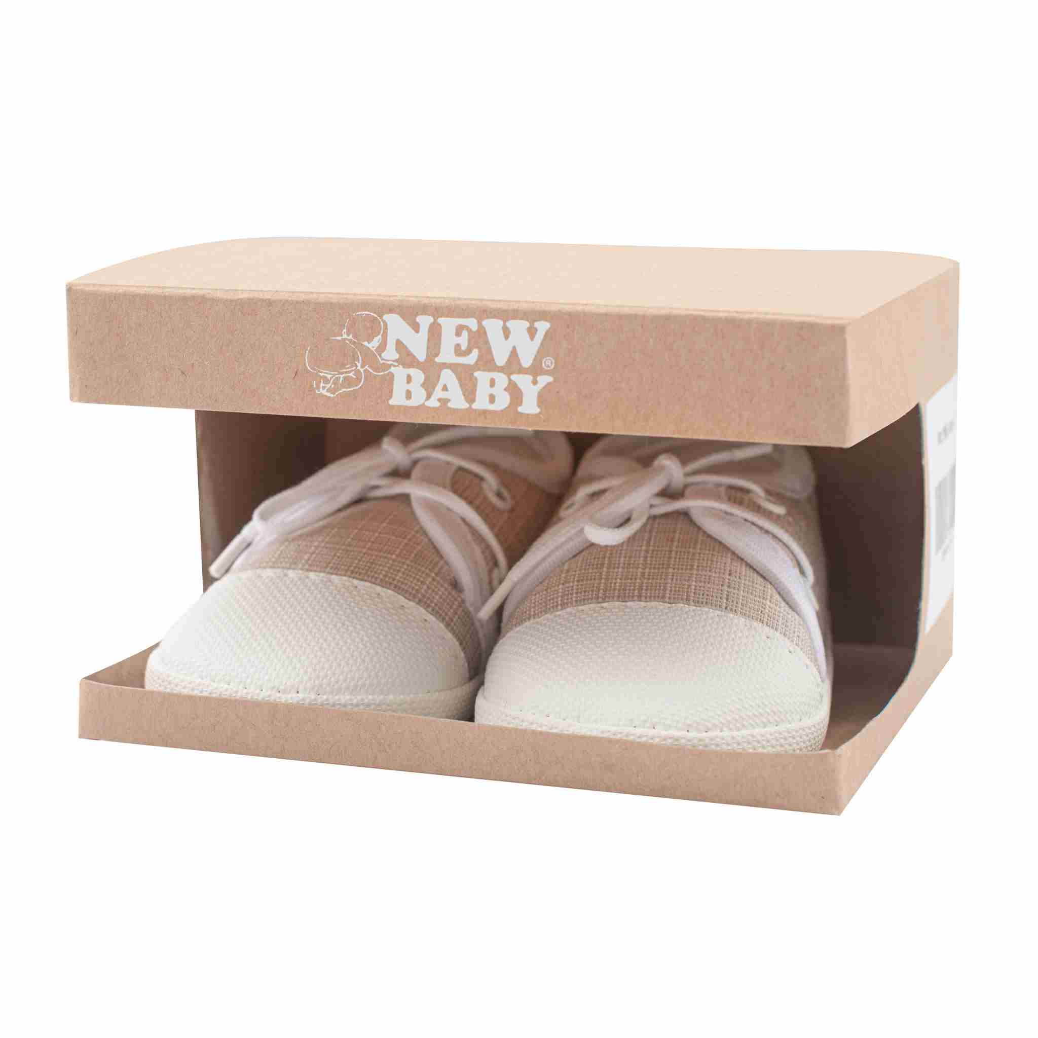 Niemowlęce, stylowe i wygodne papucie New Baby. Piękne papucie są w stylu trampek o nowoczesnym wyglądzie do wiązania z sznurkami. Paputki to idealny wybór na pierwsze buciki dla Twojego dziecka. Przylegają do stopy i mają szerokie wnętrze, co pozwala na swobodny ruch palców i rozwój mięśni. Produkt nie jest przeznaczony do chodzenia. Są bardzo lekkie z bardzo cienką syntetyczną podeszwą. Skład: 80% bawełna, 20% poliester. Podeszwa: materiał syntetyczny. Długość wkładki wewnętrznej 12,5 cm. Przeznaczony dla dzieci w wieku 12-18 miesięcy. Dla chłopców i dziewcząt. Dostarczamy w praktycznym pudełku Eco, dlatego nadaje się również jako miły prezent. Uwaga: pod wkładką tekstylną znajduje się papierowa wkładka utrzymująca kształt pantofli. Usuń tę papierową wkładkę przed pierwszym użyciem.