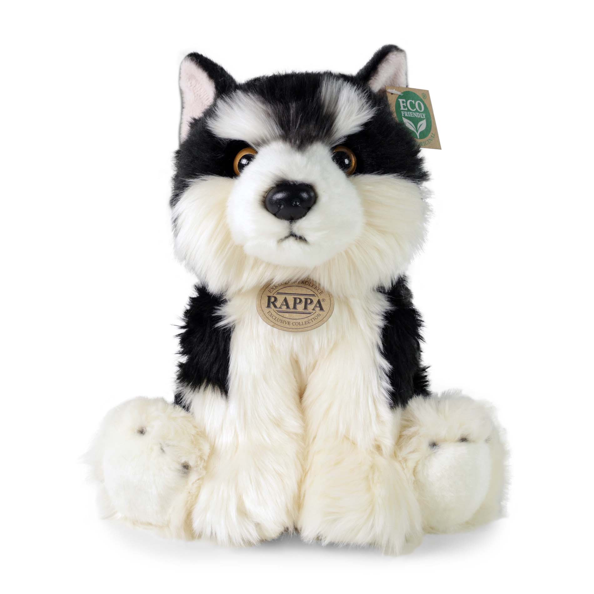 Uroczego pluszowego psa malamuta nie może zabraknąć w żadnym dziecięcym pokoju! Ten siedzący pies jest wykonany z ekskluzywnego, wysokiej jakości pluszu, a jego długość wynosi około 28 cm. Ten rewelacyjny pluszak idealnie nadaje się również na prezent! Co właściwie oznacza ECO-FRIENDLY? Wypełnienie pluszowej zabawki wykonane jest z przetworzonych butelek PET. Materiał ten jest całkowicie bezpieczny, nieodróżnialny w dotyku od standardowego wypełnienia i w pełni certyfikowany dla bezpieczeństwa nawet najmłodszych. Postanowiliśmy pójść ekologiczną drogą z jak najmniejszym obciążeniem dla środowiska - drogą ECO-FRIENDLY.