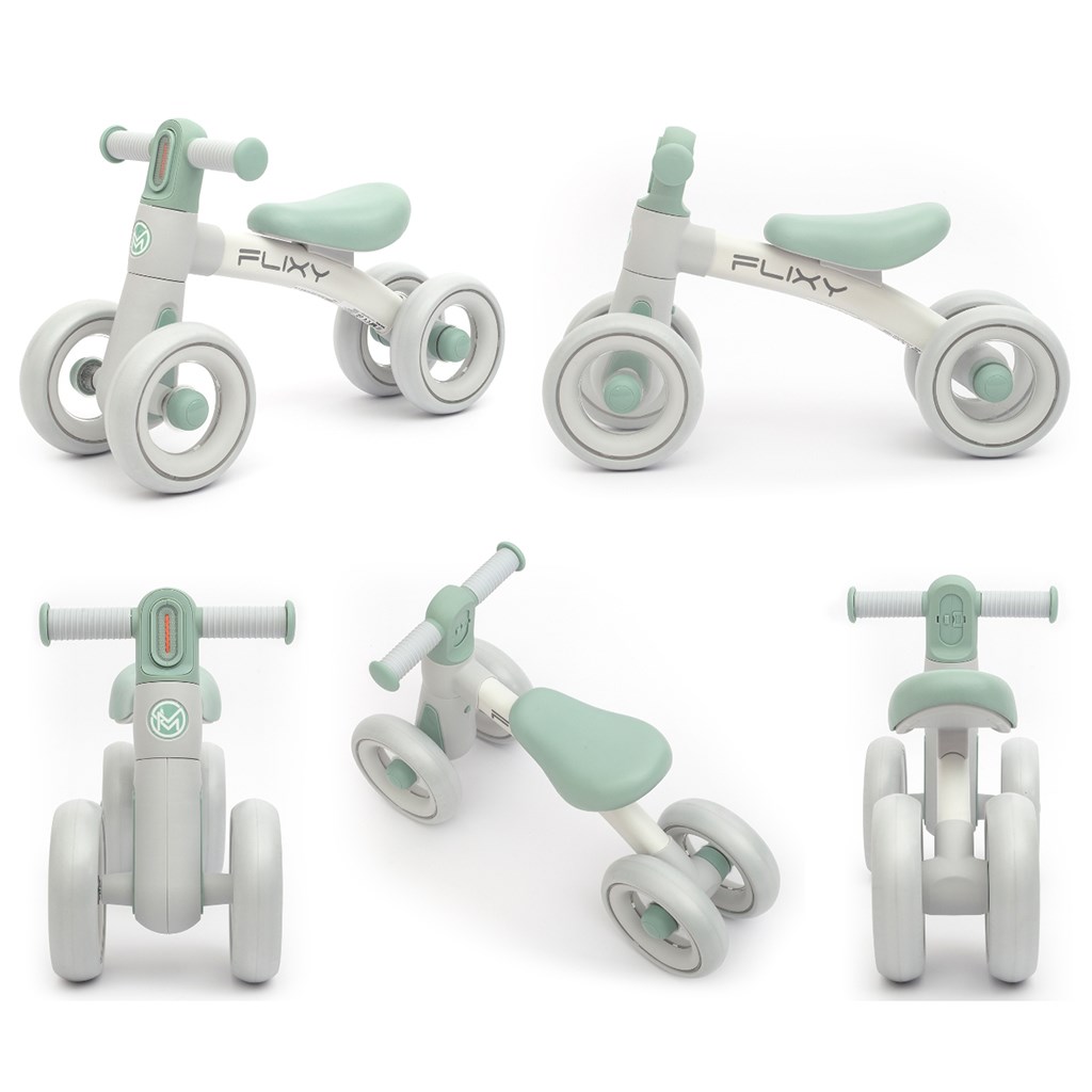 Rowerek biegowy FLIXY to idealny pierwszy rowerek dla najmłodszych dzieci od 12 miesiąca życia. Dzięki czterem kołom zapewnia maksymalną stabilność, wspiera rozwój równowagi i pomaga maluchom nabrać pewności podczas pierwszych przejażdżek. Nowoczesny design, światło LED w kierownicy oraz lekka konstrukcja sprawiają, że to świetny towarzysz zabawy w domu i na zewnątrz.