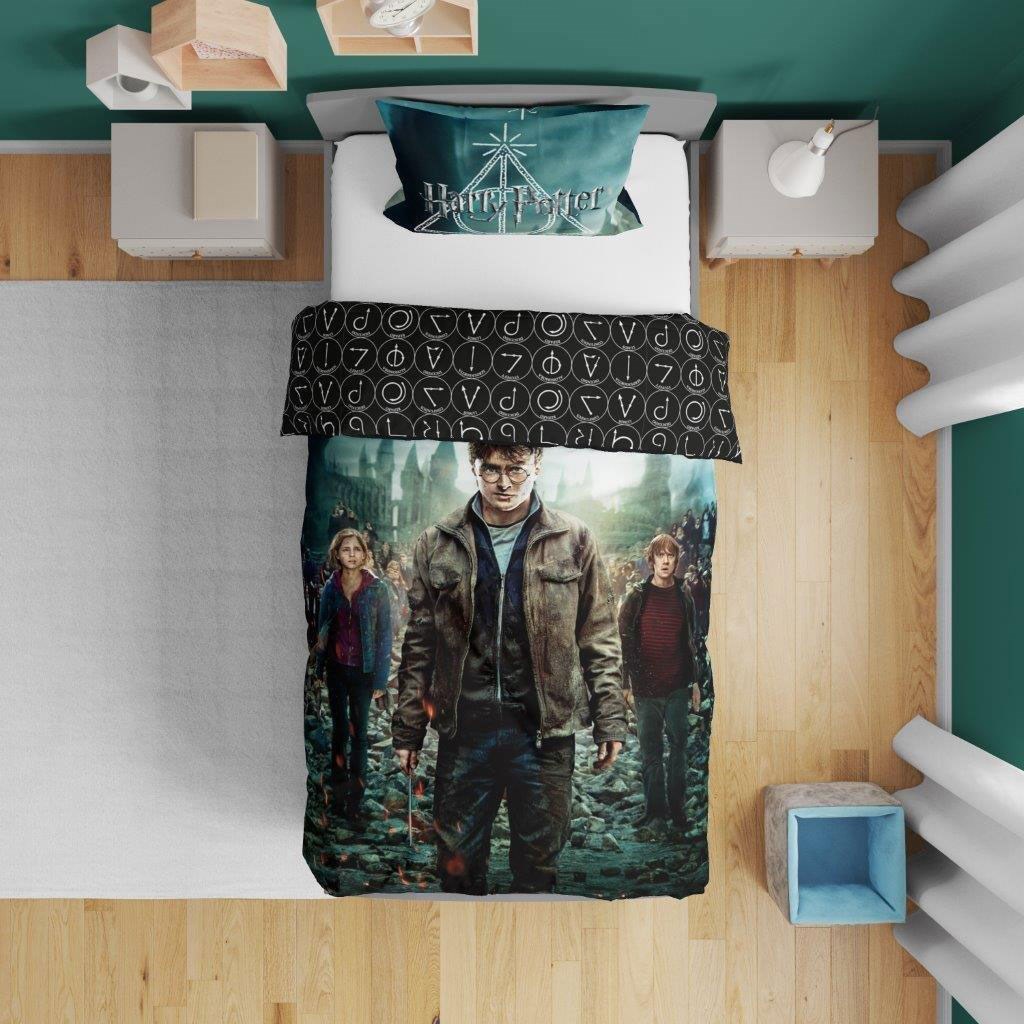 Pościel licencyjna Harry Potter . Komplet składa się z jednej poszwy na kołdrę 135X200 cm oraz jednej poszewki na poduszkę 80X80 cm.